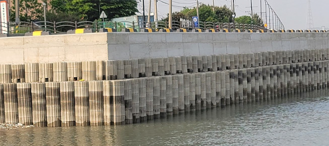 해안가, 하천, 산악지형 등 연약지반에 적용할 수 있는 세계 유일의 옹벽블록으로 어떤 조건에서도 시공 간편한 3D 입체 결합구조이다.