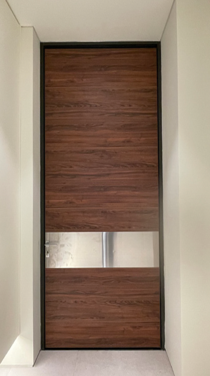 프레임 및 문짝의 히든 타입을 자체개발하여 기능 및 디자인 특허 출원 중이며, 최대 폭 2미터, 높이 6미터가 가능하며, 기본 폭 1400mm 높이 3200mm 이 가장 인기 있다.