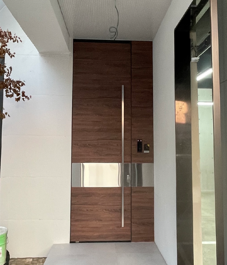 피봇도어는 일반적인 경첩 방식이 아닌, 문이 중앙 혹은 측면에 설치된 축(피봇)을 중심으로 회전하는 방식으로, 건물 외관에 독특한 미적 효과를 제공한다. 독창적이고 웅장한 디자인은 대형 도어 디자인에서 더욱 빛을 발한다.